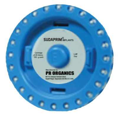 - Sudaprim is also available in the form of implants. Each cartridge contains 24 implants.